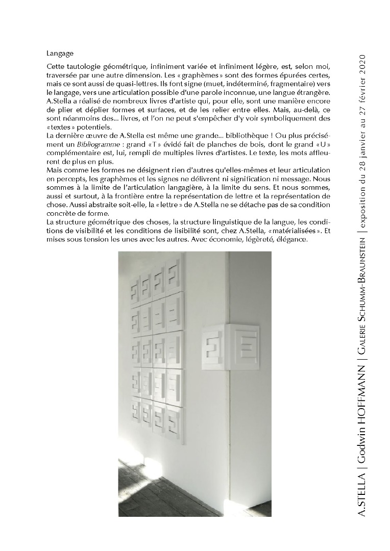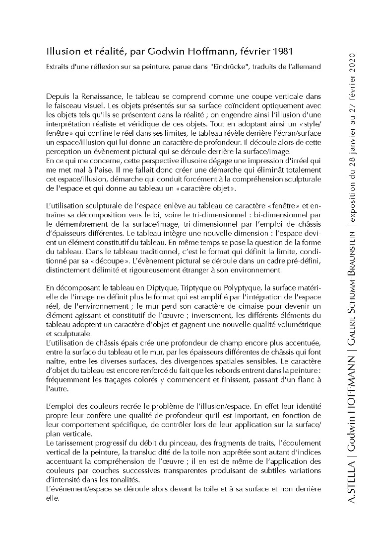 Avec un invité, François RIGHI, et les artistes de la Galerie, A.STELLA, J.-Ph. CARRÉ-MATTEI, Horacio CASSINELLI, María CHILLÓN, Alain CLÉMENT, Jérôme DUSSUCHALLE, Éric FOURMESTRAUX, Godwin HOFFMANN, Christel VALENTIN, WANG Suo Yuan.