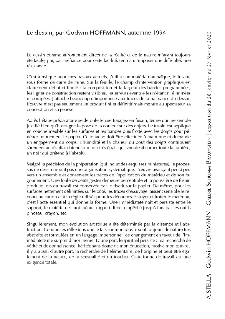 Alors le dessin, la sculpture, ces choses agencées disent peut-être cela, à moins qu’une fois de plus ce ne soient que réminiscences forcloses, songes d’un sol en devenir de ciel ou bien encore l’inverse." Jérôme DUSSUCHALLE, mars 2018