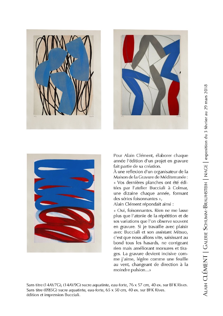 3 février – 29 mars 2018 : Alain CLÉMENT « Nage », œuvres sur papier, livres d'artiste, sculptures.