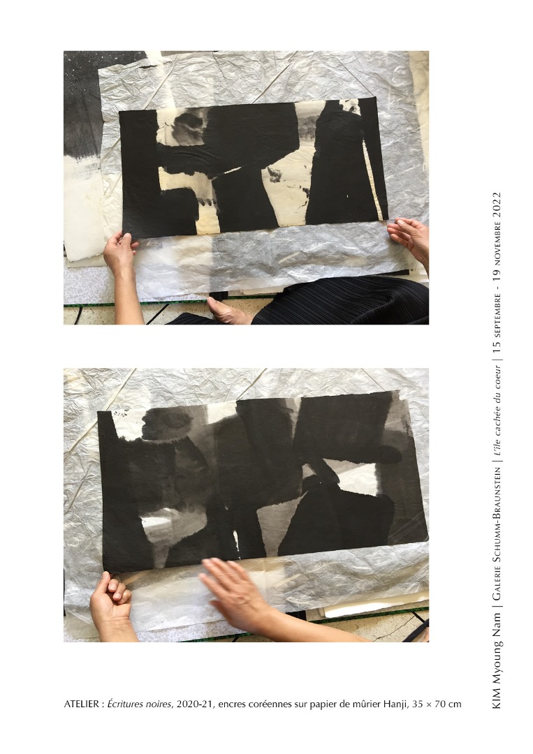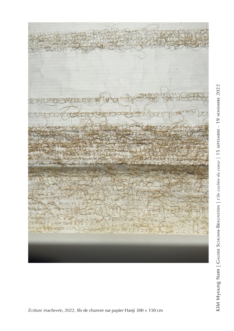 KIM Myoung Nam, "Eroded writing", 2021, gravure sur bois, 110 x 68 cm