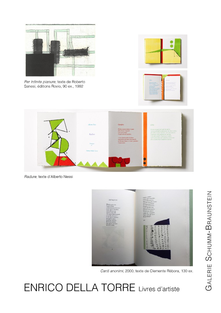 Ainsi, dans le cadre de l'exposition d'Enrico Della Torre, "Comme un bonheur suspendu", seront présentés les livres d'artiste dans lesquels il est entré en dialogue avec les poètes Alberto Nessi, Roberto Sanesi, Rèbora...